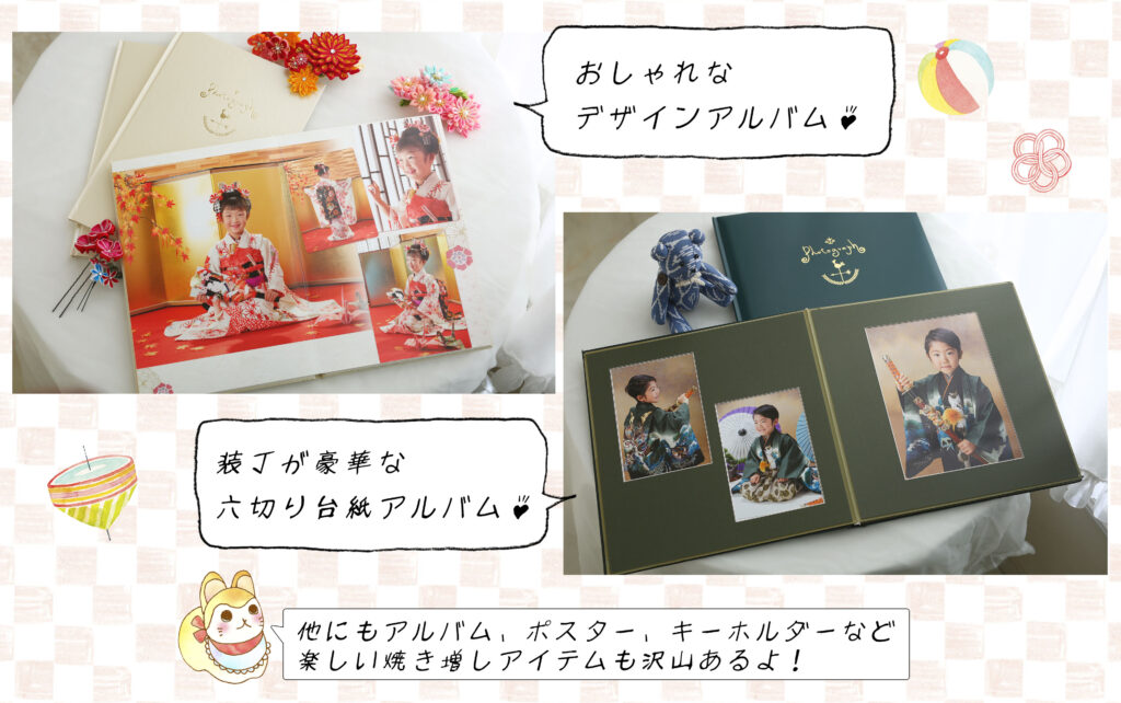 ※この他、3着以上のゴージャスプラン、ご兄弟姉妹で1冊のアルバムを作るプランなど、様々なプランやアルバムがございます。お気軽にお問い合わせ下さい♪